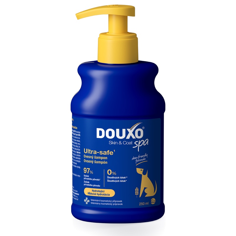 Ovesný šampon Douxo Skin & Coat SPA pro psy je veterinární kosmetický přípravek vyvinutý pro bezpečné čištění, hydrataci a výživu pokožky a srsti. Unikátní složení zanechává srst psa jemnou, zářivě lesklou a příjemně voňavou.