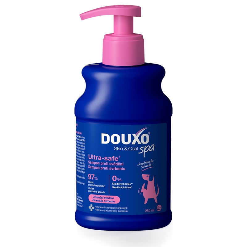 Šampon proti svědění Douxo Skin & Coat SPA pro psy je veterinární kosmetický přípravek vyvinutý pro bezpečné čištění, hydrataci a zklidnění svědivé a citlivé pokožky. Unikátní složení zanechává srst jemnou, zářivě lesklou a příjemně voňavou.