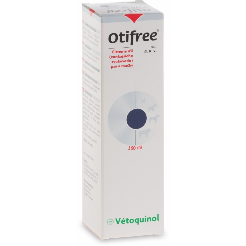 Roztok k čistění zevního zvukovodu u psů a koček. Otifree® roztok má schopnost intenzivně rozpouštět ušní maz a nečistoty, významně se tak rovněž snižuje počet bakterií a kvasinek přítomných v zevním zvukovodu.