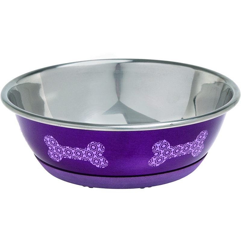 Nerezová růžová miska pro psa nebo kočku s motivem kostí.