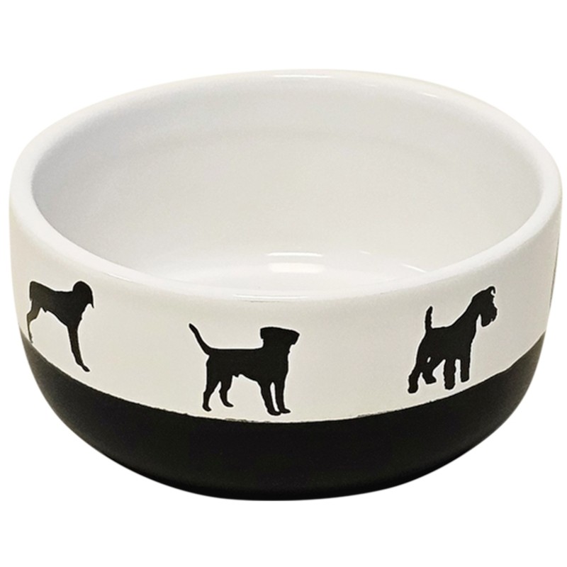 Elegantní miska Nobby Shape v bílé a černé barvě s motivem psů je vyrobena z kvalitní keramiky, která je odolná a snadno se čistí. Bez obav ji lze mýt i v myčce na nádobí.
