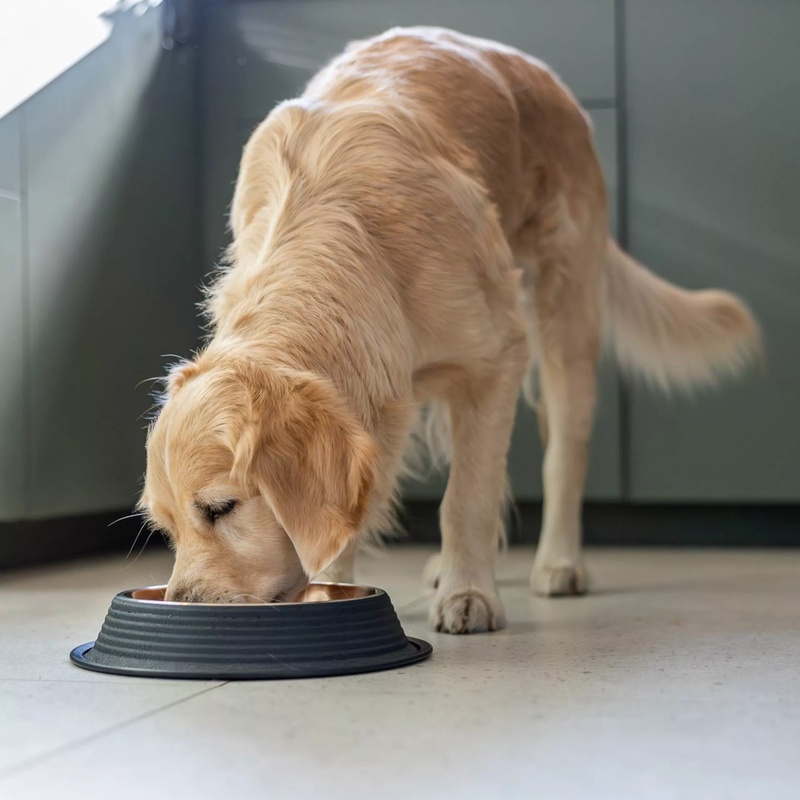 Miska na krmivo nebo vodu pro psy je vyrobená z nerezové oceli s měděnou povrchovou úpravou. Spodní okraj je opatřený gumovým lemem, který zabraňuje klouzání a snižuje riziko rozlití. Vhodná pouze pro ruční mytí.