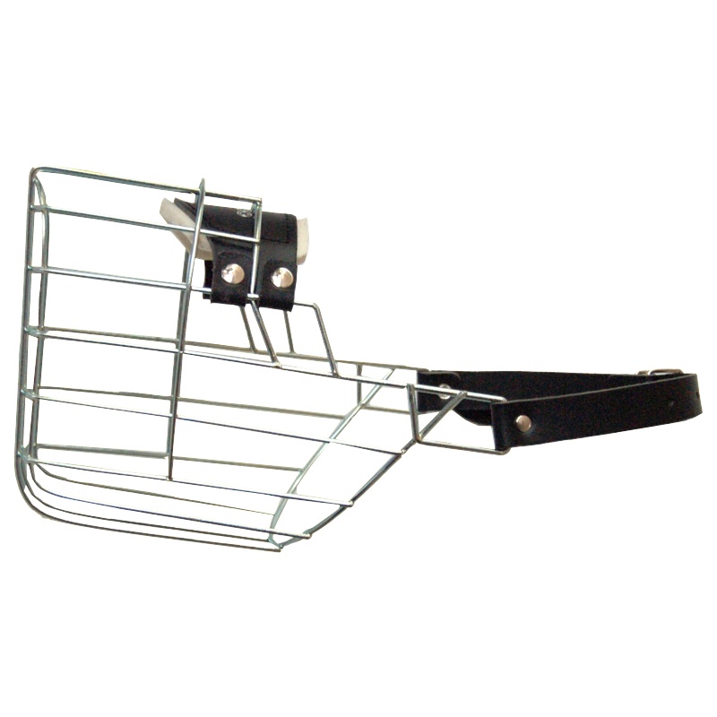Kovový náhubek s upínacími řemínky z barexu. Vhodný zejména pro plemena: dobrman - pes.