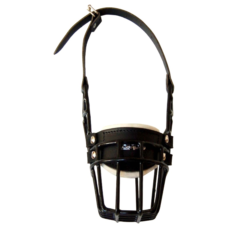 Kovový náhubek s upínacími řemínky z barexu. Vhodný zejména pro plemena: německý ovčák, malamut - fena.