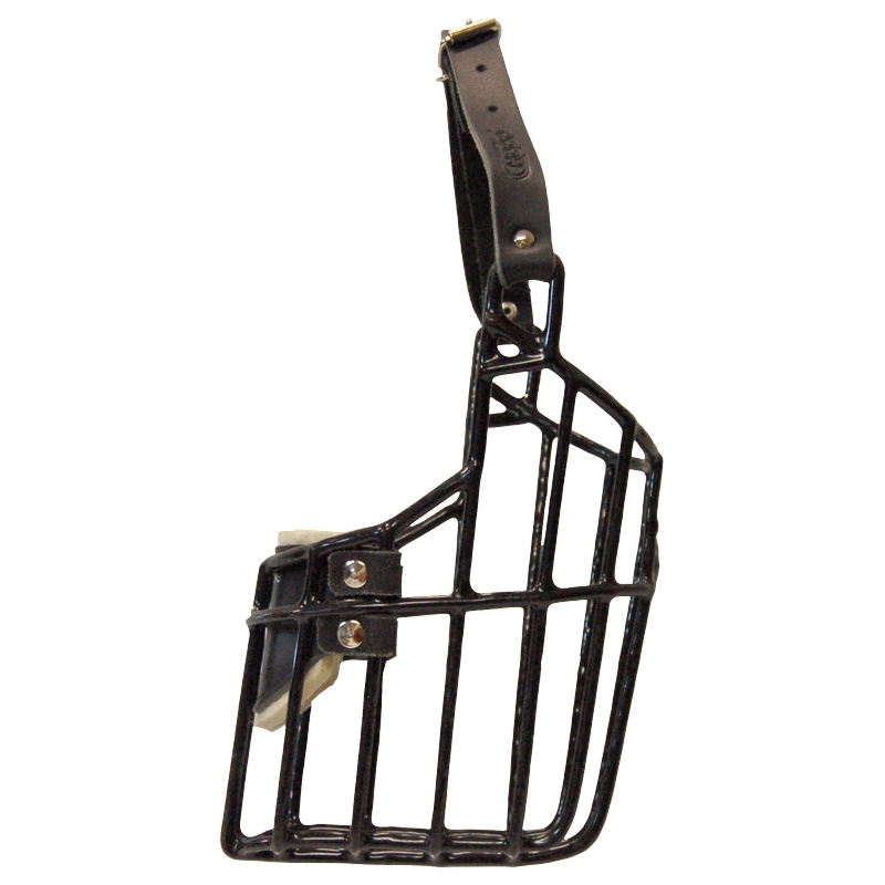 Kovový náhubek s upínacími řemínky z barexu. Vhodný zejména pro plemena: ridgeback - fena.