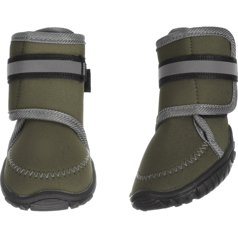Neoprenové botičky pro psy Flamingo Kajan spolehlivě chrání psí tlapky při venkovních aktivitách i v těžším terénu. Díky pevné podrážce poskytují ochranu před horkými povrchy, ledem či ostrými kameny. Jsou voděodolné, snadno se upevňují pomocí nastavitelného suchého zipu a mají pevnou protiskluzovou podrážku, která pomáhá zamezit uklouznutí na mokrých či kluzkých površích. Reflexní prvky zvyšují viditelnost za šera či ve tmě. Boty se snadno čistí ručním praním.