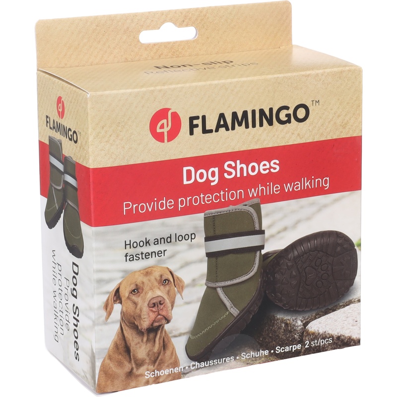 Neoprenové botičky pro psy Flamingo Kajan spolehlivě chrání psí tlapky při venkovních aktivitách i v těžším terénu. Díky pevné podrážce poskytují ochranu před horkými povrchy, ledem či ostrými kameny. Jsou voděodolné, snadno se upevňují pomocí nastavitelného suchého zipu a mají pevnou protiskluzovou podrážku, která pomáhá zamezit uklouznutí na mokrých či kluzkých površích. Reflexní prvky zvyšují viditelnost za šera či ve tmě. Boty se snadno čistí ručním praním.