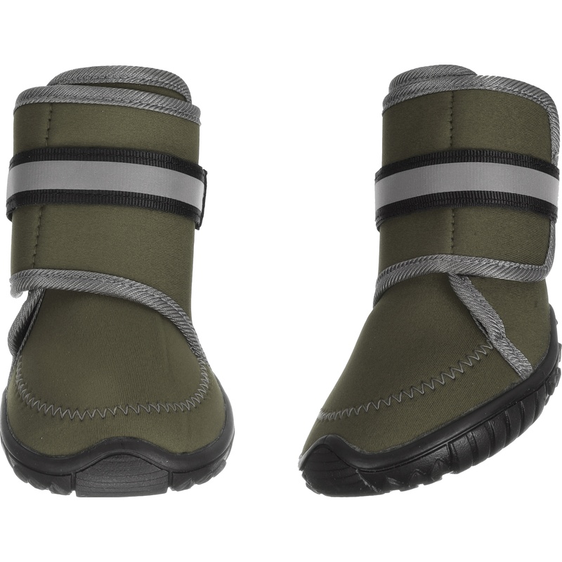 Neoprenové botičky pro psy Flamingo Kajan spolehlivě chrání psí tlapky při venkovních aktivitách i v těžším terénu. Díky pevné podrážce poskytují ochranu před horkými povrchy, ledem či ostrými kameny. Jsou voděodolné, snadno se upevňují pomocí nastavitelného suchého zipu a mají pevnou protiskluzovou podrážku, která pomáhá zamezit uklouznutí na mokrých či kluzkých površích. Reflexní prvky zvyšují viditelnost za šera či ve tmě. Boty se snadno čistí ručním praním.