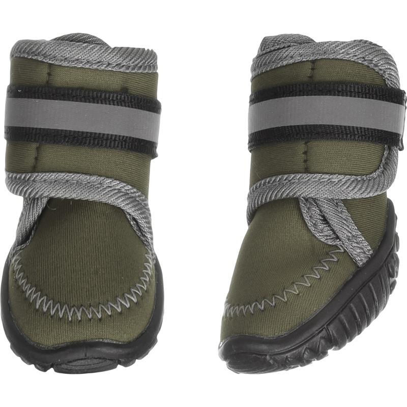 Neoprenové botičky pro psy Flamingo Kajan spolehlivě chrání psí tlapky při venkovních aktivitách i v těžším terénu. Díky pevné podrážce poskytují ochranu před horkými povrchy, ledem či ostrými kameny. Jsou voděodolné, snadno se upevňují pomocí nastavitelného suchého zipu a mají pevnou protiskluzovou podrážku, která pomáhá zamezit uklouznutí na mokrých či kluzkých površích. Reflexní prvky zvyšují viditelnost za šera či ve tmě. Boty se snadno čistí ručním praním.