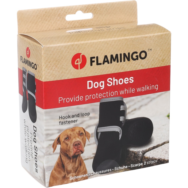 Botičky pro psy Flamingo Laky pomáhají chránit psí tlapky při každodenních venkovních aktivitách a zajišťují psům pohodlí a stabilitu při chůzi po náročných površích. Boty jsou vyrobené z odolného polyesteru a díky nastavitelnému suchému zipu perfektně sedí na tlapkách. Měkká protiskluzová podrážka pomáhá předcházet uklouznutí na mokrém či kluzkém povrchu a reflexní prvky zvyšují viditelnost psa za šera nebo ve tmě. Botičky jsou voděodolné a ideální na procházky po celý rok – v létě chrání před horkým asfaltem a v zimě před sněhem, ledem a solí. Snadno se čistí ručním praním.