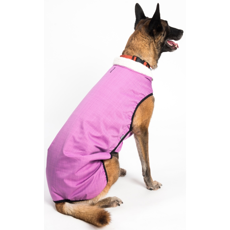 Zimní obleček LUNA pro psa je navržen tak, aby chránil důležité partie psího těla před chladem, větrem, sněhem i deštěm. Funkční materiál – membránový softshell – splňuje hned několik funkcí najednou: je hřejivý, nepromokavý (s omezením), větruodolný a zároveň prodyšný. Svrchní vrstvu tvoří měkká tkanina s hladkým povrchem, který je vodoodpudivý a neulpívá na něm sníh. Pod ní je větru- a voděodolná membrána podšitá příjemným beránkem. Okraje vesty jsou obšité elastickým lemem. Za krkem je otvor pro připnutí vodítka k obojku. Samozřejmostí jsou reflexní prvky.