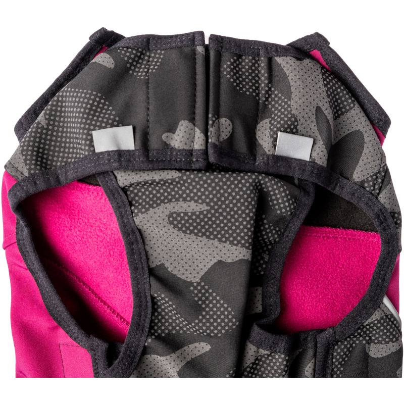Funkční softshellová vesta Splendor chrání psa před chladem, větrem i deštěm. Vysoce kvalitní třívrstvý softshell má nejen vynikající termo- a hydroizolační vlastnosti, ale také vysokou prodyšnost a elastičnost. Střih je navržen anatomicky tak, aby psa neomezoval v pohybu, a přitom chránil všechny důležité partie jeho těla. Okraje vesty jsou obšité pružným lemem, takže obleček výborně drží na těle psa, nepodfukuje a neuniká zpod něj teplo. Gumičky na zadní nohy a ocásek zajišťují, aby vesta neodstávala v zadní části. Za krkem je otvor pro připnutí vodítka a všité poutko pro zavěšení (např. při sušení). Oblékání je snadné a rychlé díky systému suchých zipů: oboustranné zapínání pod krkem umožňuje optimální nastavení obvodu krční části a zipy na bocích umožňují zapnutí břišní části zleva i zprava. Pro bezpečnější venčení za zhoršené viditelnosti je vesta opatřena reflexními prvky.
