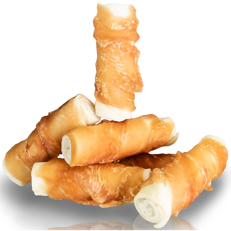 • Surová kůže obalená hovězím masem,