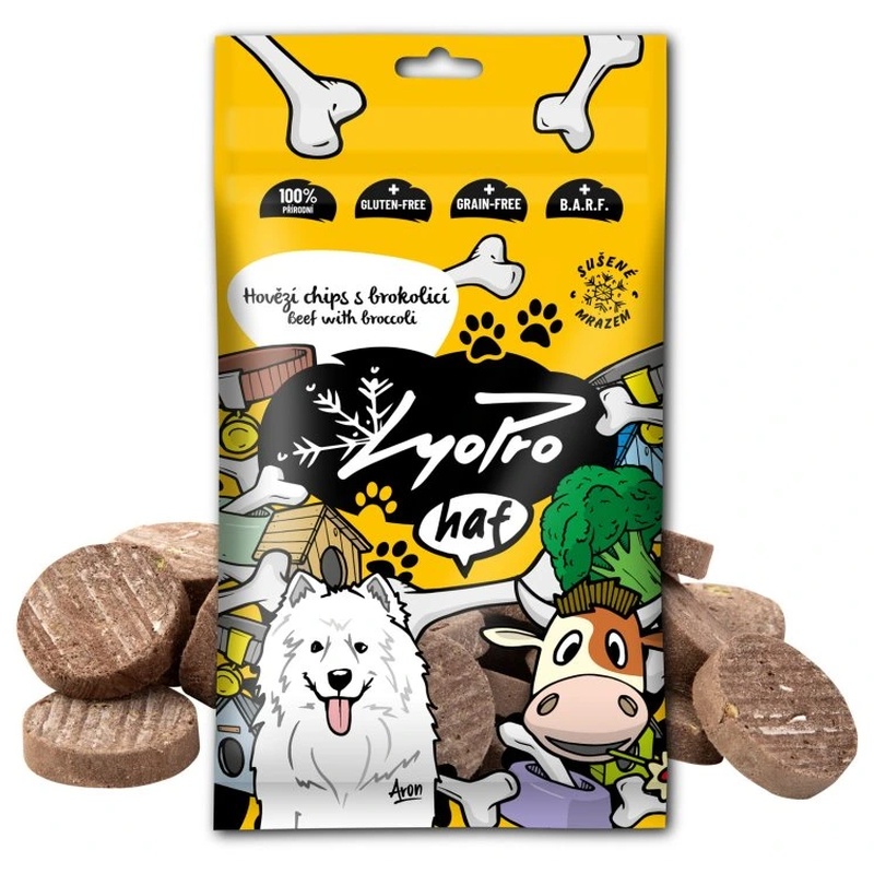 LyoPro haf Hovězí chips s brokolicí = jednoduše zdravá, lehká a výživná odměna.