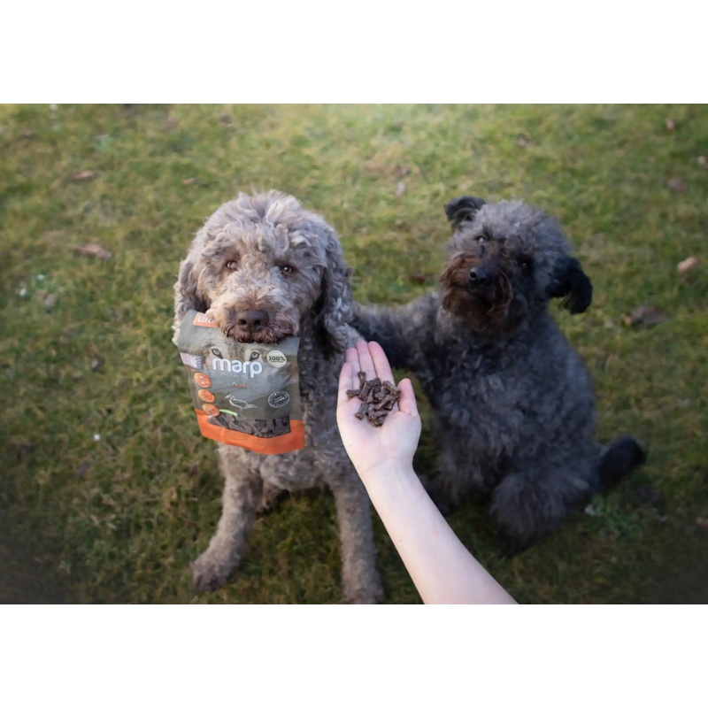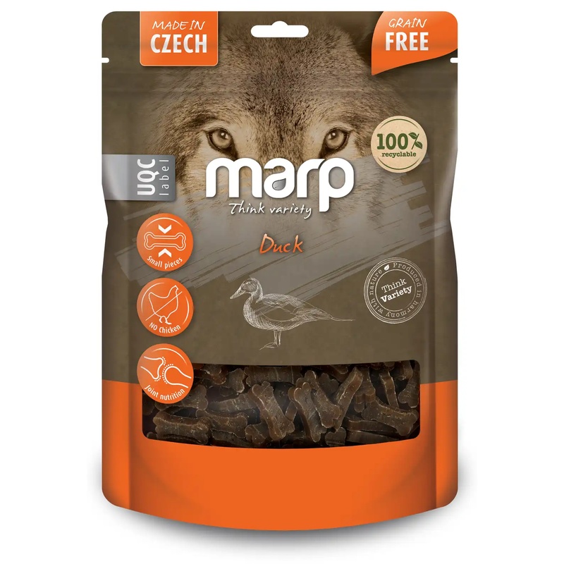Lahodné bezobilné (grain-free) pamlsky Marp Variety s kloubní výživou jsou vhodné pro štěňata a dospělé psy všech plemen. Měkké kachní kostičky, ideální jako odměna při tréninku, neobsahují umělá barviva a konzervanty a jsou vyráběné šetrným procesem v ČR. Znovuuzavíratelný obal je 100% recyklovatelný.