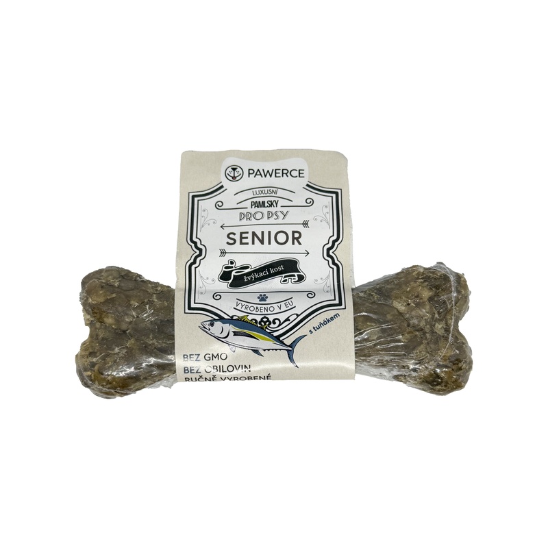 Luxusní pamlsek Pawerce Senior je 100% přírodní, originální a chutná žvýkačka s tuňákem pro starší a dospělé psy. Vzhledem k nízkému obsahu tuku je pamlsek ideální i pro psy se sklony k nadváze. Žvýkání psa zabaví a posílí jeho žvýkací svaly.