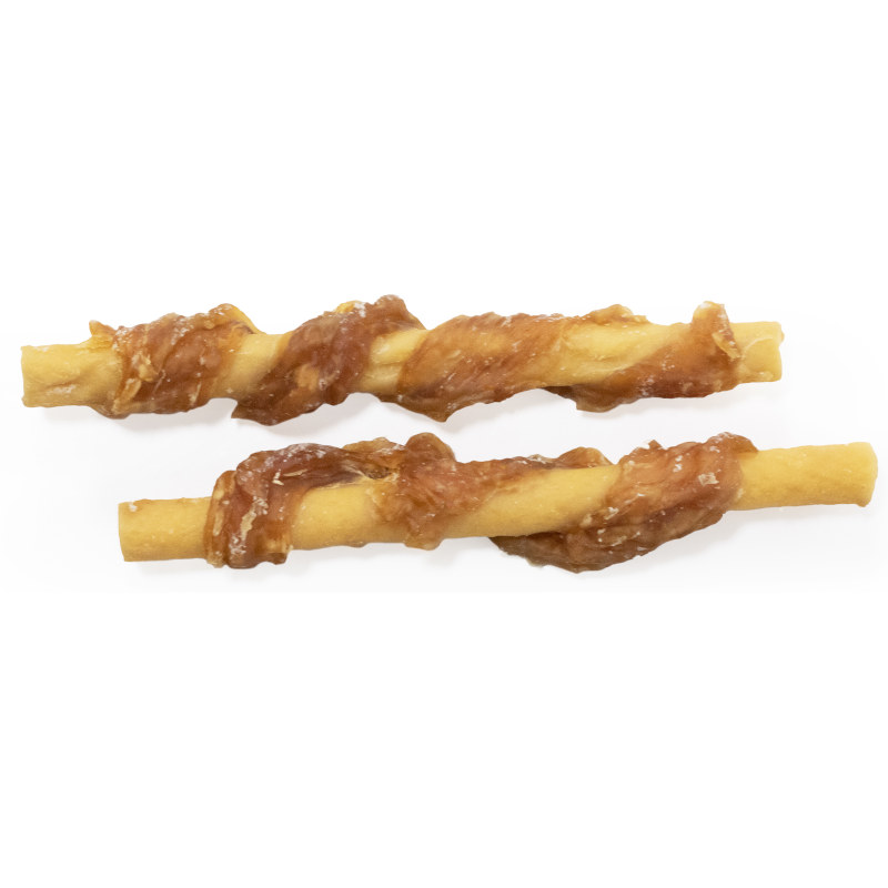 kuřecí prsa 68 %, bramborový škrob 11 %, sójový protein, tapiokový škrob, rostlinný glycerin, pšeničná mouka, sorbitol, sůl, sýrové aroma, sorban draselný.