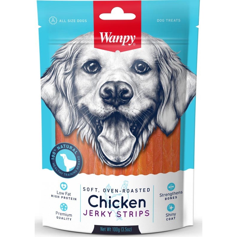 Wanpy měkké kuřecí jerky stripsy 100 g - Pamlsky pro psy
