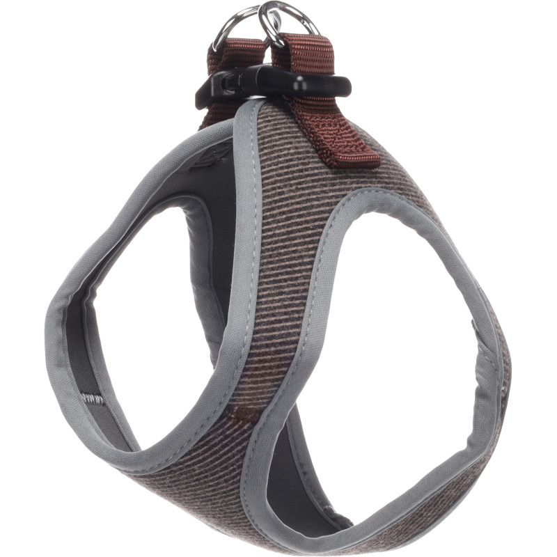 Hrudní postroj z odolného nylonu je opatřen plastovou přezkou na zapínání a dvěma chromovanými D-kroužky k připnutí vodítka. Pro větší pohodlí psa jsou okraje postroje obšité pevným lemem.