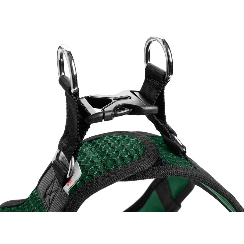 Hrudní postroj Hunter Hilo Comfort je vyrobený z příjemné, lehké a prodyšné 3D síťoviny, která psovi poskytuje maximální komfort. Měkký materiál kopíruje tělo psa a neomezuje jej v pohybu. Lehce se nasazuje přes přední tlapky a zapíná na zádech pomocí suchého zipu a plastové spony – jde díky tomu o skvělou volbu pro psy, kteří nemají rádi navlékání postroje přes hlavu. Za horkého počasí můžete síťovinu namočit ve studené vodě a psa tím ochladit bez rizika zapaření srsti. Pro lepší viditelnost je postroj opatřen vysoce reflexním lemováním 3M Scotchlite.