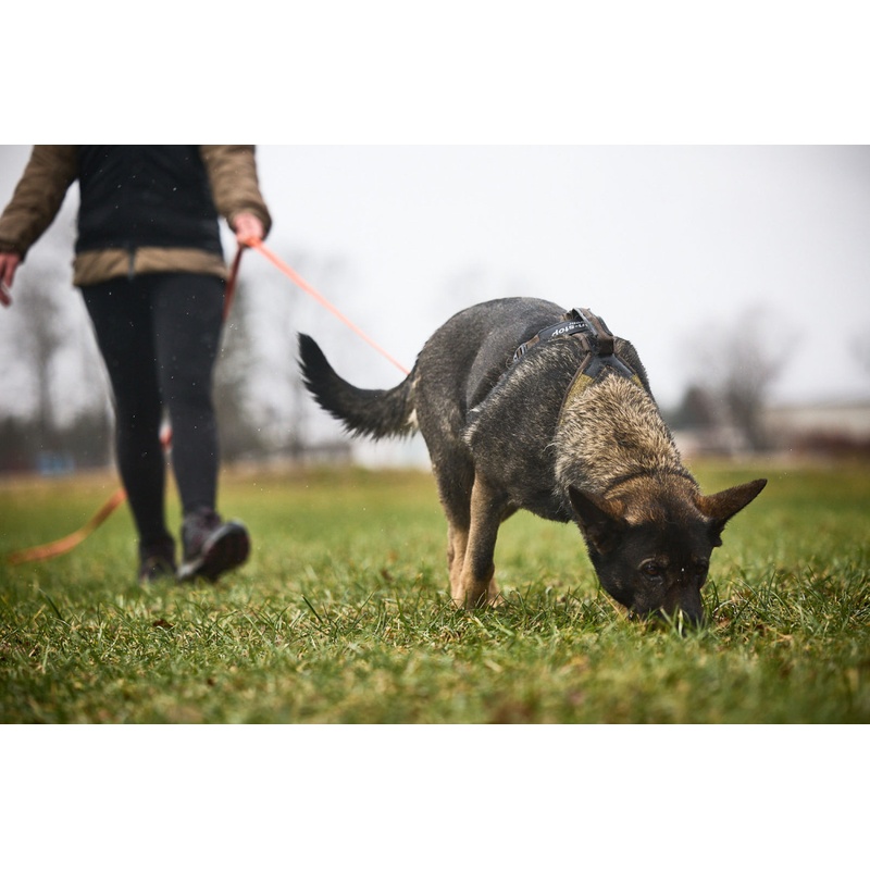 Krátký postroj Line Harness Grip WD je součástí odolné edice Working Dog určené pro vojenské, policejní a záchranářské psy. Hodí se i pro psy v jiném pracovním nebo sportovním výkonu. Lze použít i pro canicross, bikejoring a skijoring a další sporty se psy, kteří netahají příliš silně. Popruhy jsou vyrobeny z hustě tkaného nylonu a na exponovaných místech zesíleny hypalonem. Aby postroj nedřel, je každý šev obrácený hladkou stranou k tělu psa. Postroj má dva body pro připnutí vodítka: D-kroužek na hřbetě pro klasické připnutí a upevňovací bod na hrudníku pro stopovačku. Kovové spony a kroužky vydrží i hrubší zacházení, stejně jako madlo na hřbetu, které usnadňuje vedení psa např. u překážek nebo držení během výcviku. Na hrudním a hřbetním popruhu jsou suché zipy, na které můžete připevnit vlastní identifikační, reflexní a další prvky.