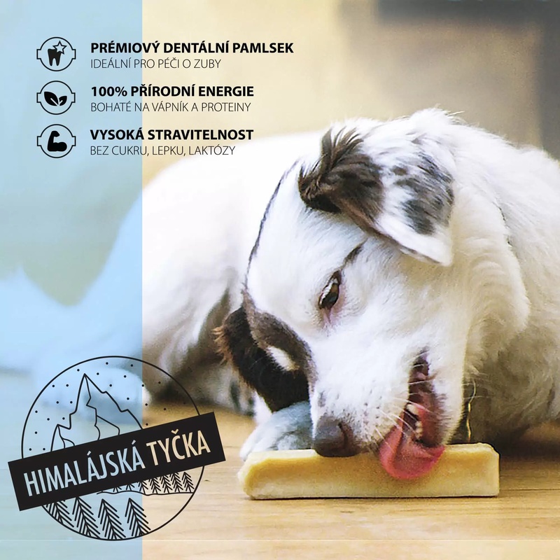 Himalájská tyčka je odolná žvýkací dobrota z kvalitního belgického mléka sušeného po dobu 3 měsíců. Výsledkem je extra tvrdý dentální pamlsek, který si váš pes zamiluje.