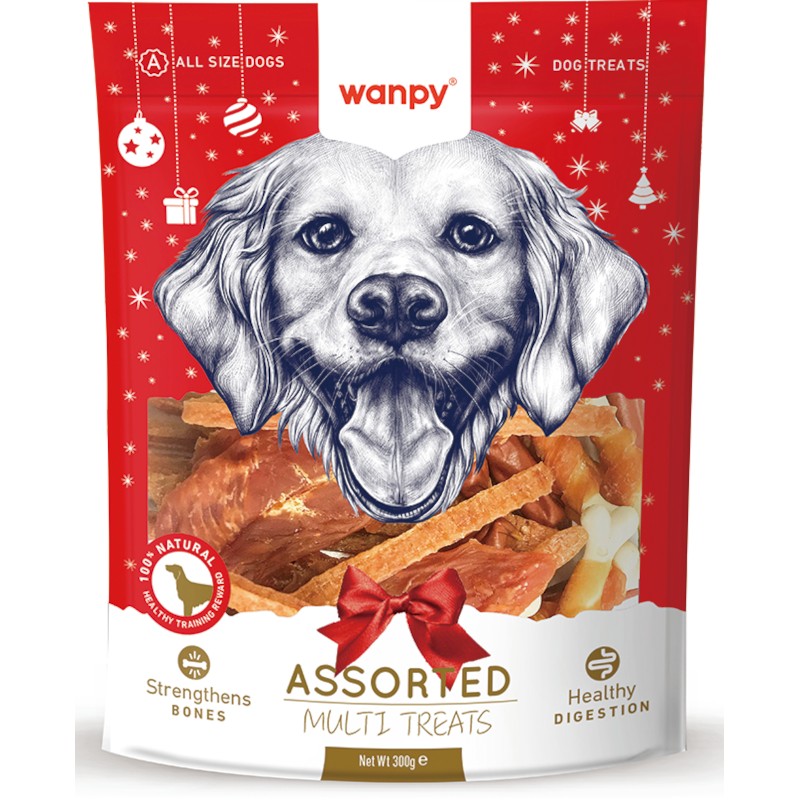 Vánoční balení kuřecích pamlsků s nízkým obsahem tuku a vysokým obsahem bílkovin. Zdravý a chutný způsob, jak uspokojit potřebu vašeho psa žvýkat. Balení obsahuje 4 druhy pamlsků. Ideální jako dárek pod stromeček!