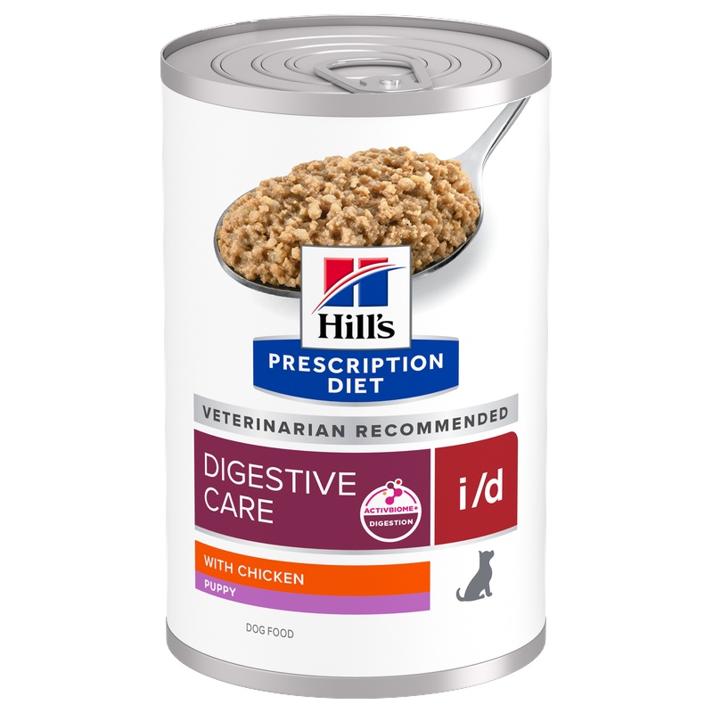 Hill's Prescription Diet Digestive Care i/d Puppy je kompletní dietetické krmivo s kuřetem určené k omezení střevních resorpčních onemocnění a ke kompenzaci špatného trávení a exokrinní pankreatické nedostatečnosti štěňat. Konzerva se zvýšeným obsahem sodíku a draslíku obsahuje vysoce stravitelné ingredience. ActivBiome+ Digestion je patentovaná směs prebiotické vlákniny, u které bylo klinicky ověřeno, že rychle vyživuje střevní mikrobiom, čímž podporuje zdravé trávení a celkovou pohodu štěněte.