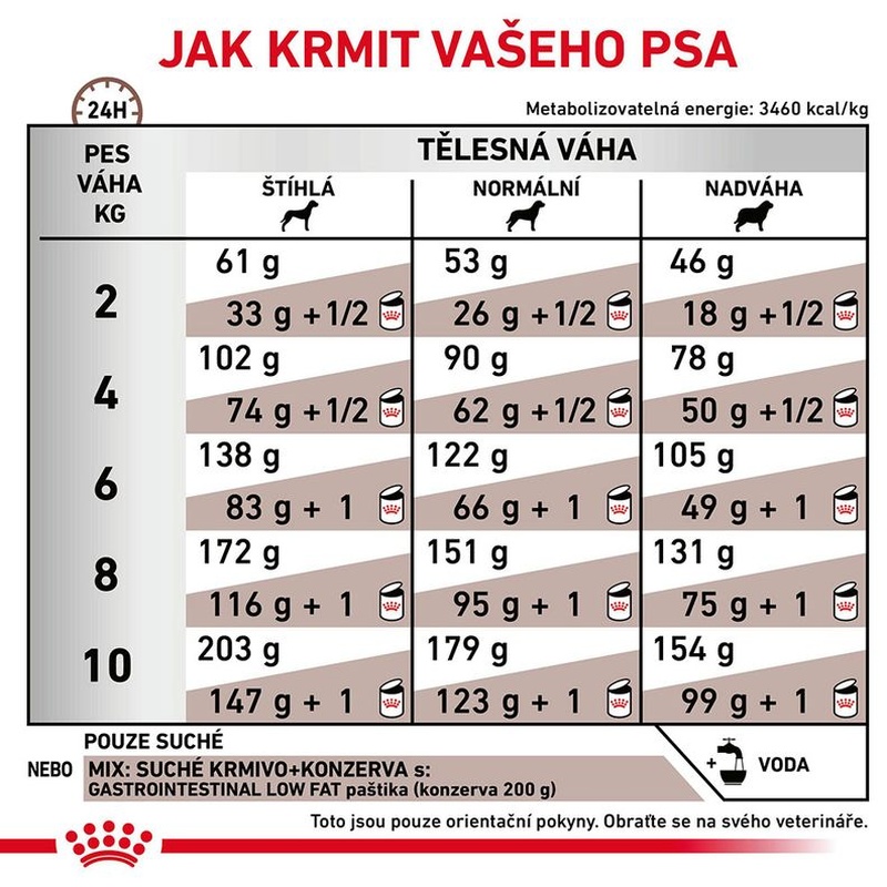 Denní dávka se odvíjí od hmotnosti a kondice psa.