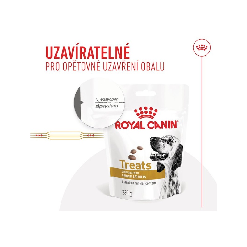ROYAL CANIN Veterinary Urinary S/O Treats = chutná odměna, která podporuje speciální dietu vašeho psa.