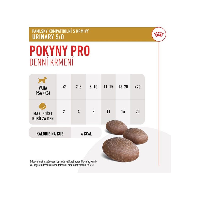 Pamlsky jsou ideální jako doplněk k veterinárním dietám z řady ROYAL CANIN Urinary, konkrétně: