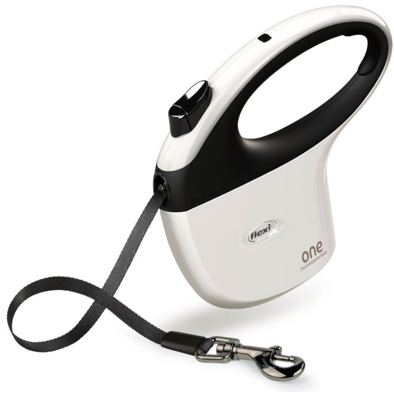 Samonavíjecí vodítko Flexi One v elegantním lesklém pouzdře usnadňuje vedení psa díky dvěma tlačítkům, brzdovému a uzamykacímu, která lze ovládat jedním prstem. Rukojeť je ergonomická, měkká a navíc nastavitelná, takže ji lze přizpůsobit velikosti ruky. Odolná páska poskytuje psovi volnost pohybu do 5 metrů. Vyzkoušená a osvědčená technologie brzdového systému zastaví pouhým stiskem tlačítka i ten nejprudší pohyb vpřed. Vodicí systém pásky byl zdokonalen bezpočtem testů, takže se páska nezasekává, ať míří jakýmkoli směrem.
