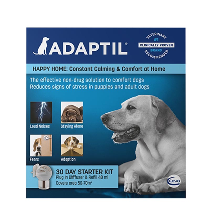 Difuzér ADAPTIL® pomáhá psům zvládat neklid a úzkost z hlasitých zvuků, z nového prostředí, z ponechání o samotě, z návštěv cizích lidí apod. Stres způsobuje změny v chování, které majitelé často přehlížejí. Příklady reakcí na stres jsou nezájem o hru, strach, agresivita nebo štěkání. Nepřehlédnutelným stresovým projevem je také ničení věcí.