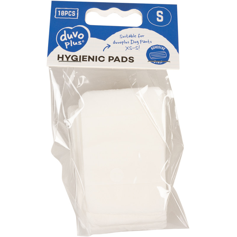 Balení 10 kusů hygienických vložek určených k nalepení do háracích kalhotek. Absorpční vložky jsou měkké, pohodlné a šetrné k pokožce psa.