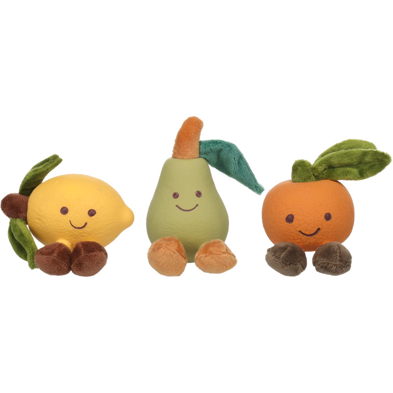 Nechejte svého čtyřnohého kamaráda vydovádět se s veselým ovocem Citri. Nabídnout mu můžete citron, hrušku nebo pomeranč. Hračka je vyrobena z latexu, zakončena plyšem a pro ještě větší zábavu má v sobě pískátko.