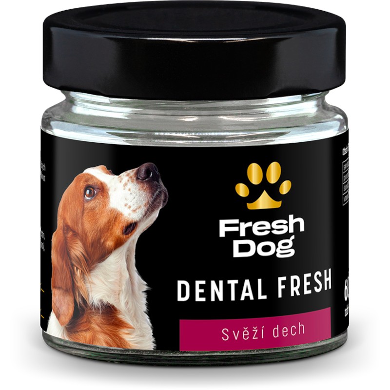 Vzhledem k tomu, že psi jsou šelmy, jejichž krmná dávka obsahuje vysoký podíl živočišných bílkovin, je vhodné jim poskytnout krmný doplněk Dental Fresh, který pomáhá dezinfikovat dutinu ústní a částečně eliminuje nepříjemný zápach z tlamy. Dle statistik má více než 80 % psů ve věku 20–27 měsíců některé z příznaků onemocnění dásní, které mohou zapříčinit až odmítání příjmu potravy a vypadávání zubů.