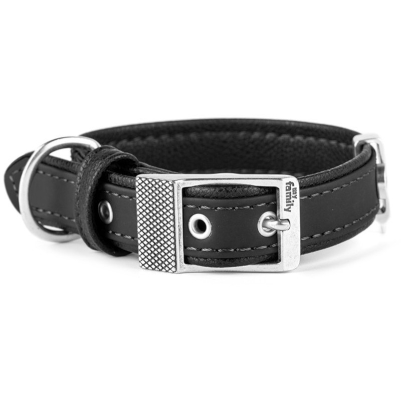Obojek pro psy z kolekce Bilbao z jemně zpracované černé kůže, obsahuje starostříbrnou povrchovou úpravu. Obojek je vyroben z kvalitního materiálu a má očko na známku značky MyFamily.