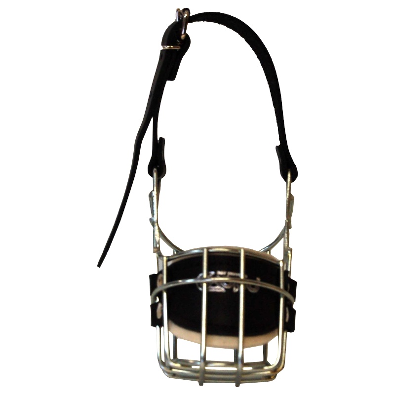 Kovový náhubek s upínacími řemínky z barexu. Vhodný zejména pro plemena: špic.
