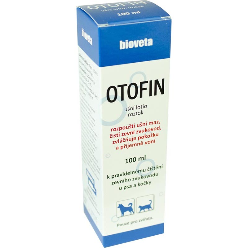 OTOFIN ušní lotio rozpouští ušní maz, čistí zevní zvukovod psa nebo kočky, zanechává vláčnou pokožku a příjemnou vůni. Jeho pravidelné používání napomáhá udržovat uši čisté a zdravé. Svým složením odpovídá současným požadavkům na kompozici přípravků určených pro efektivní a bezpečné výplachy a čištění uší psů a koček.