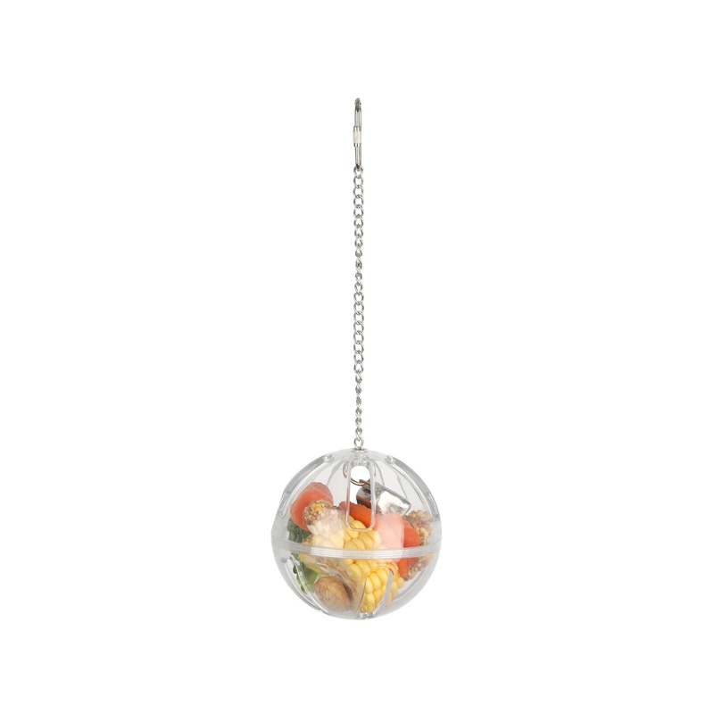 Interaktivní plnitelná hračka je určená pro malé a středně velké papoušky. Dutou kouli lze naplnit pamlsky nebo semeny, a podpořit tak přirozené shánění potravy, mentální aktivitu a omezit nudu i přejídání. Hračka je vyrobena z odolných a bezpečných materiálů a snadno se připevňuje do jakékoli klece nebo voliéry.
