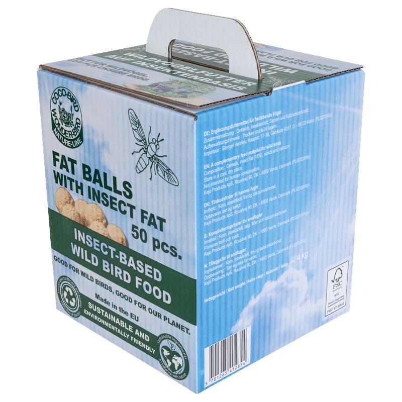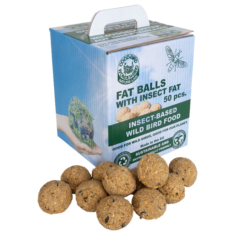 Koule z hmoty na bázi tuku z hmyzu nabízejí zdravější a udržitelnější způsob přikrmování volně žijícího ptactva. Hmyz je součástí přirozené stravy ptáků, kteří v chladných měsících přilétají na krmítka. Hmyzí tuk je pro ně zvláště v zimě cenným zdrojem živin a pomáhá jim udržet se v optimální kondici.