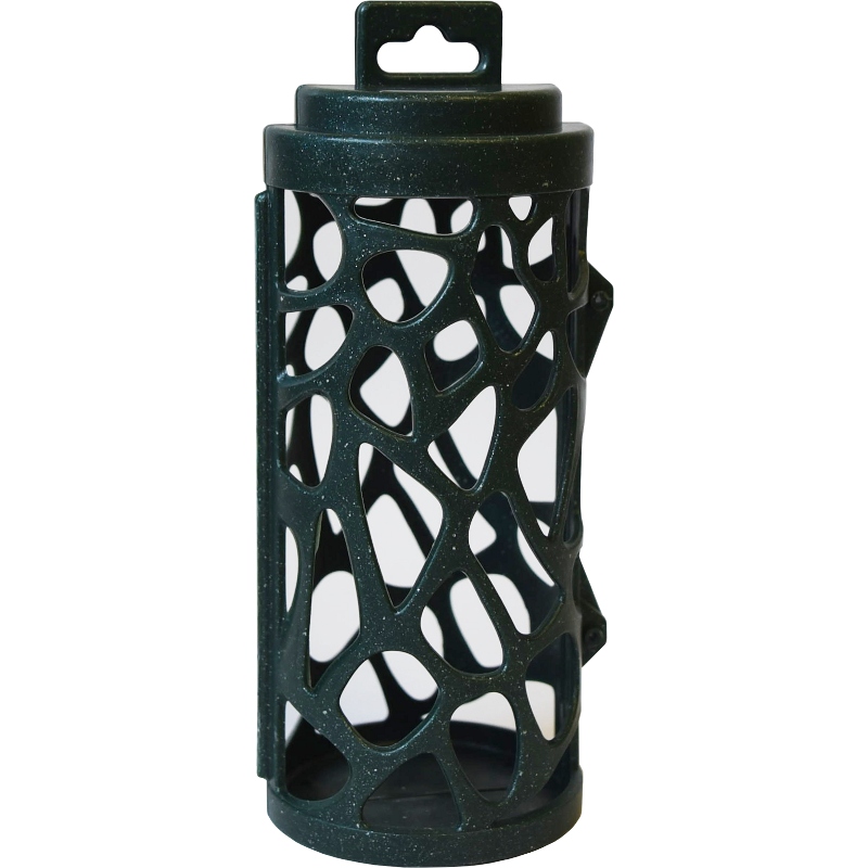 Plastové krmítko vyrobené z recyklovaného plastu pro snadné krmení volně žijícího ptactva lojovými koulemi.