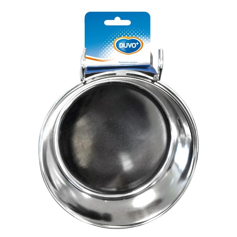 Nerezová miska k zavěšení do klece pomocí obruče s háčky od značky Duvo+.