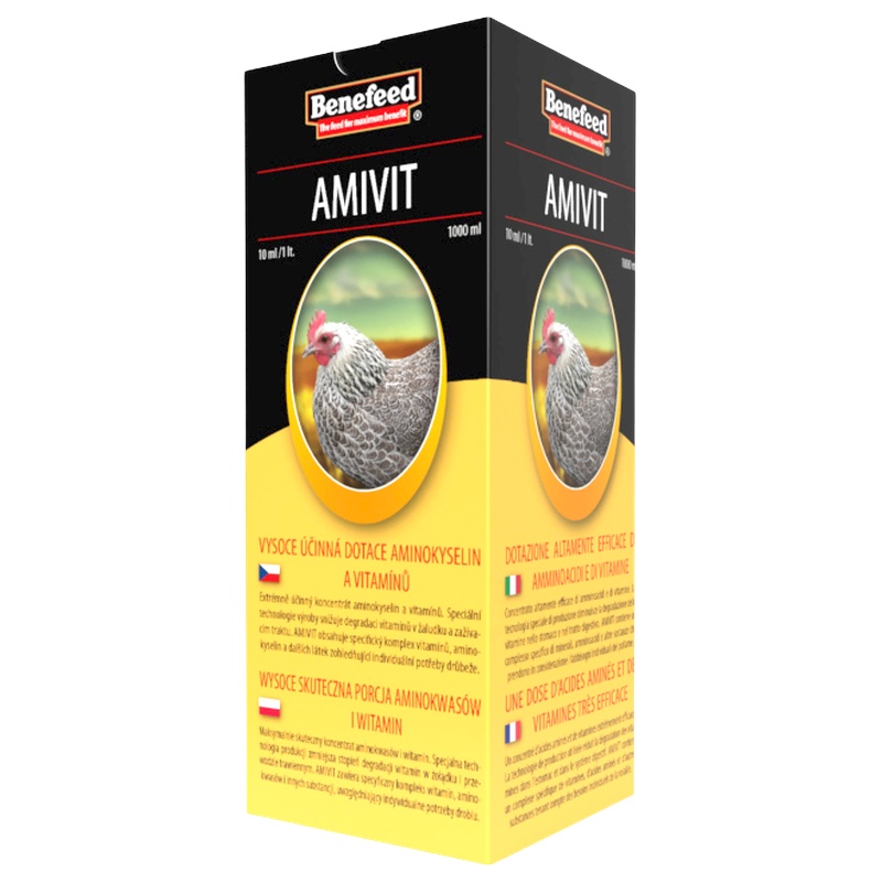 AMIVIT obsahuje specifický komplex vitamínů, aminokyselin a dalších látek zohledňující individuální potřeby kategorie zvířat, pro kterou je určen. Všechny aktivní látky jsou ve formě, která zajistí maximální účinnost každé z nich tak, aby došlo k vyrovnání hladiny jednotlivých aminokyselin a vitamínů v organismu. Optimální hladina aminokyselin a vitamínů v organismu je mimo jiné zcela nezbytným předpokladem pro vysokou obranyschopnost a odolnost organismu např. proti infekčním a virovým chorobám. U užitkových zvířat jsou také eliminovány negativní důsledky poklesu užitkovosti z důvodu snížené hladiny vitamínů v organismu.