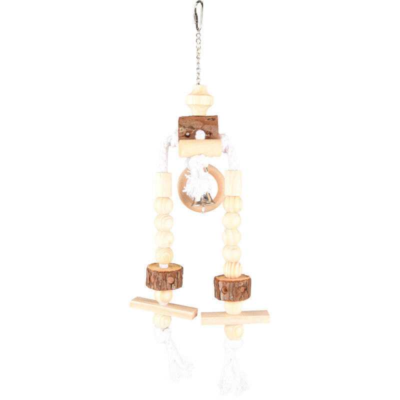 Odolná závěsná hračka se zvonečkem pro papoušky.
